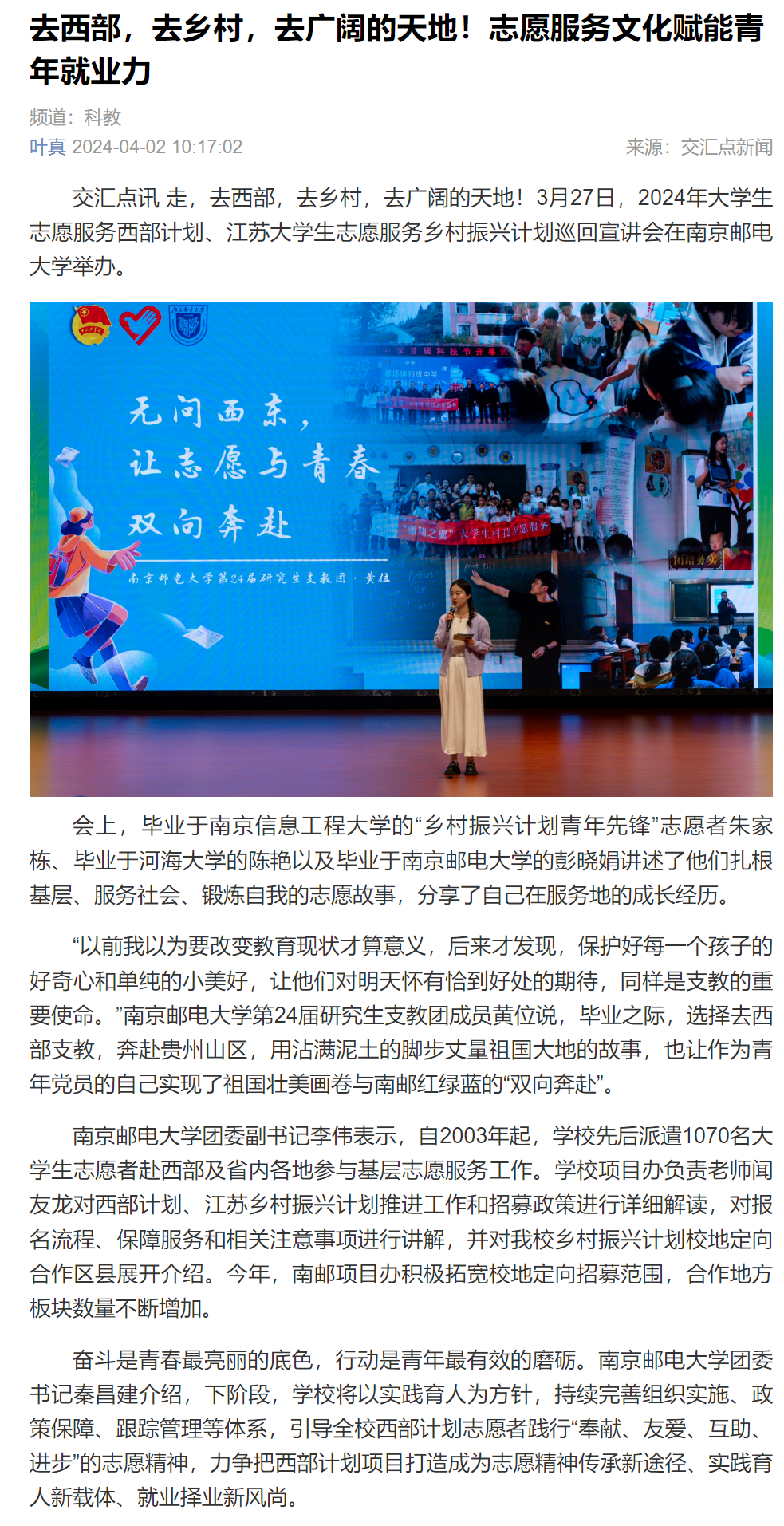 【新華日報客戶端】去西部,去鄉村,去廣闊的天地!志愿服務文化賦能青年就業力