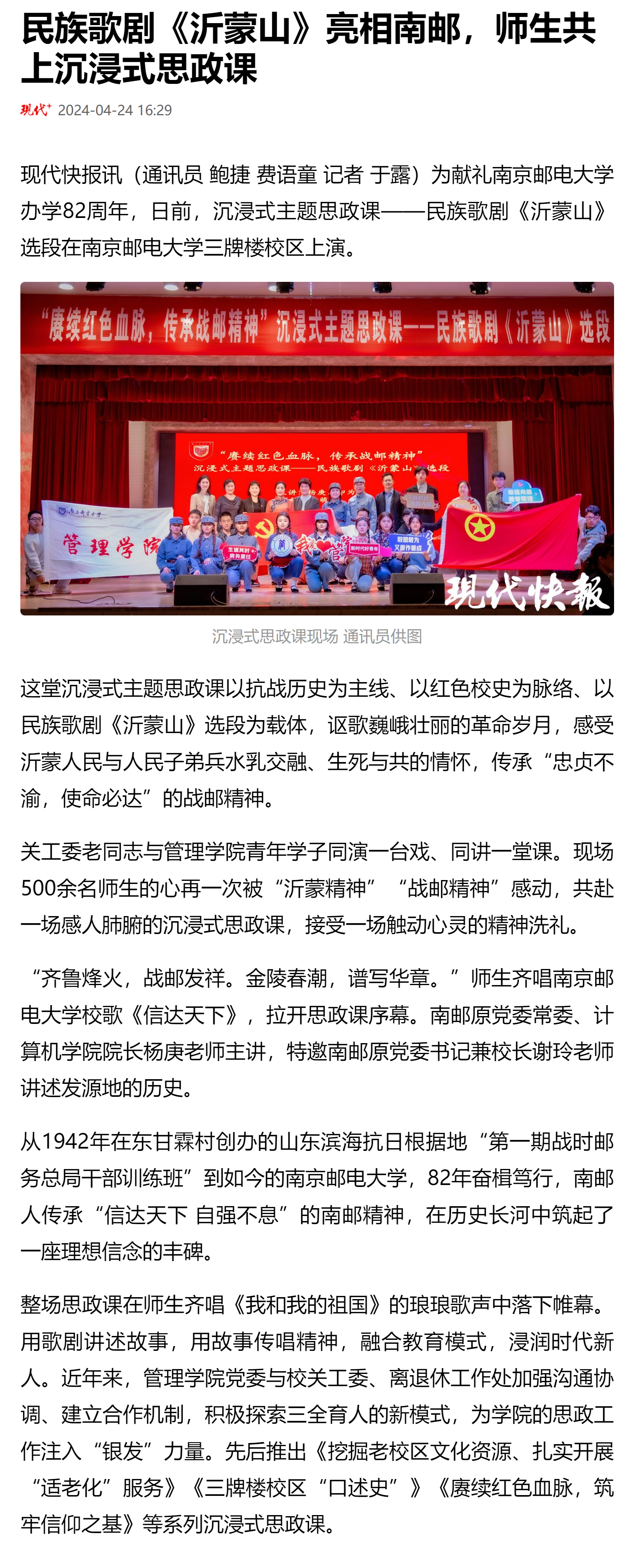 【現(xiàn)代快報全媒體】民族歌劇《沂蒙山》亮相南郵,師生共上沉浸式思政課