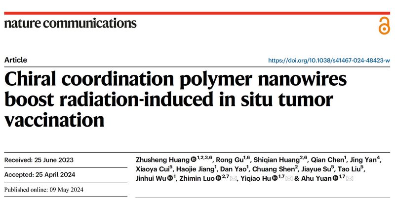 手性配位聚合物納米線增強放療誘導的腫瘤原位疫苗效應