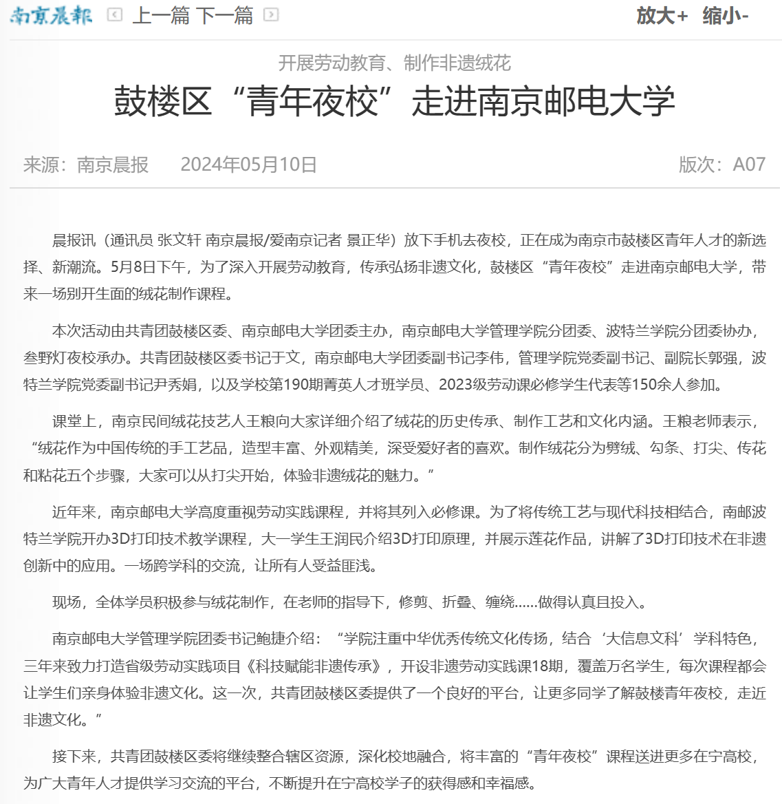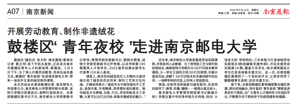 【南京晨報】鼓樓區“青年夜校”走進南京郵電大學