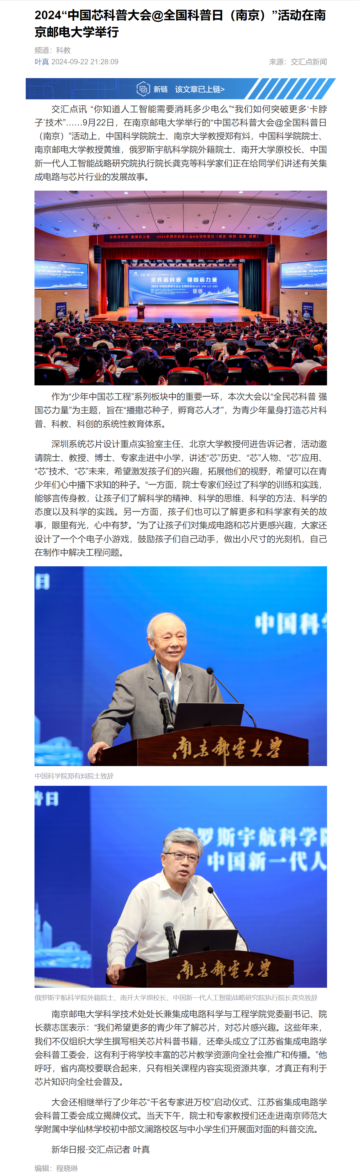 【新華日報客戶端】2024“中國芯科普大會@全國科普日(南京)”活動在南京郵電大學舉行