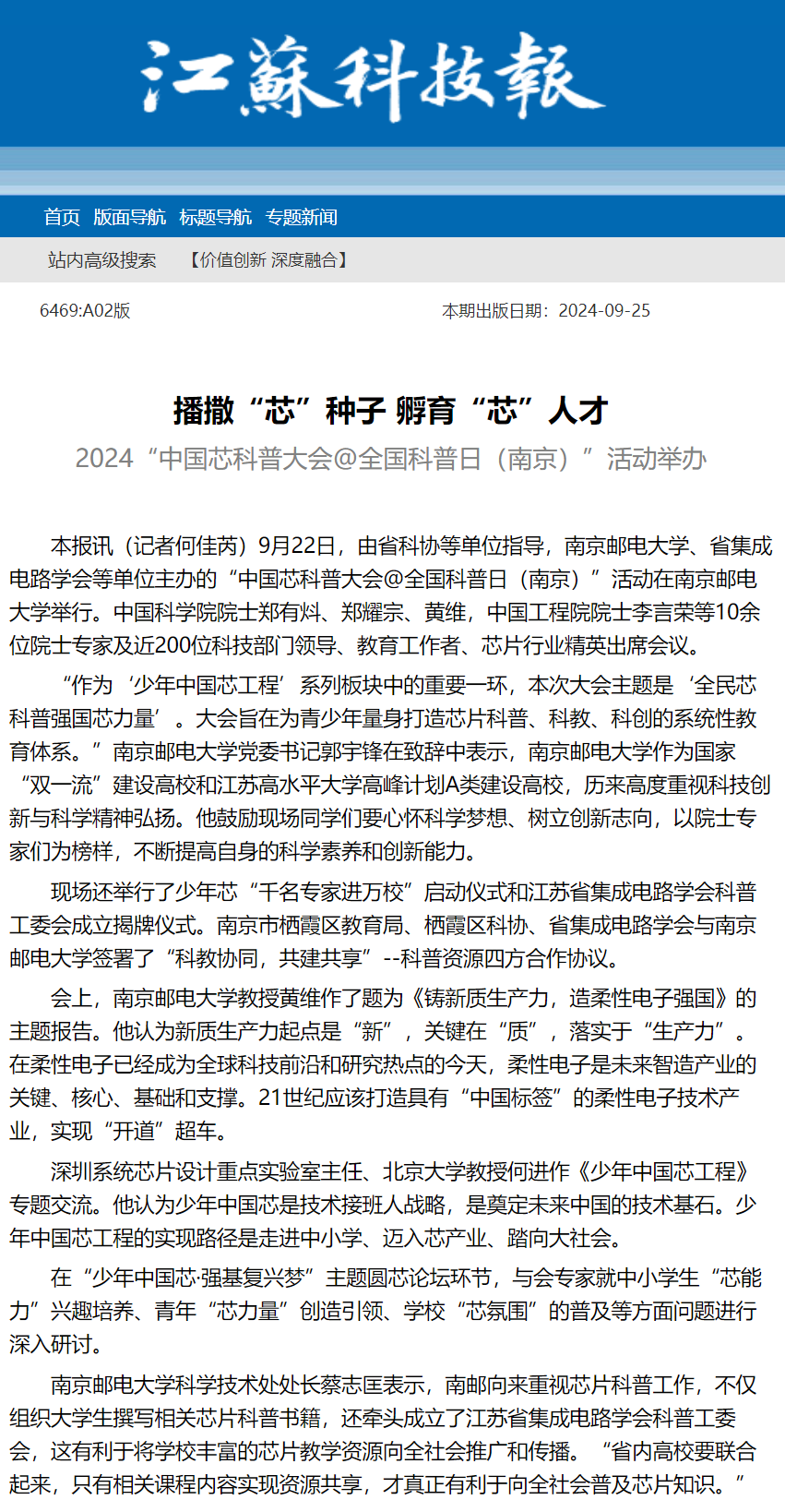 【江蘇科技報】2024“中國芯科普大會@全國科普日(南京)”活動舉辦