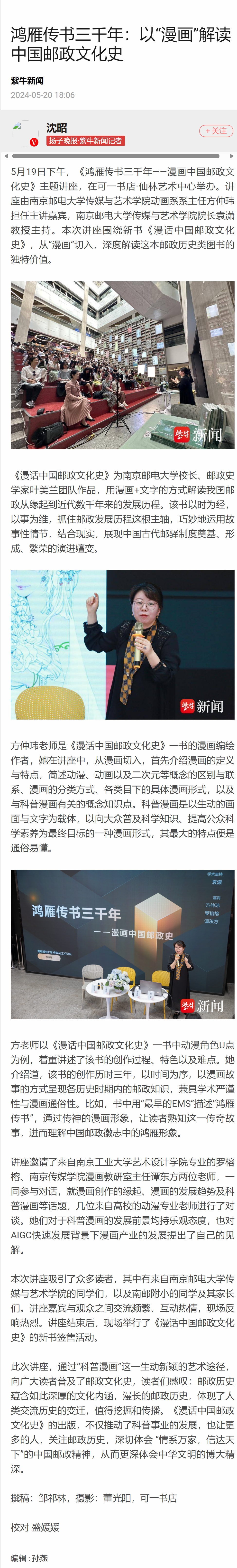 【揚子晚報客戶端】鴻雁傳書三千年:以“漫畫”解讀中國郵政文化史