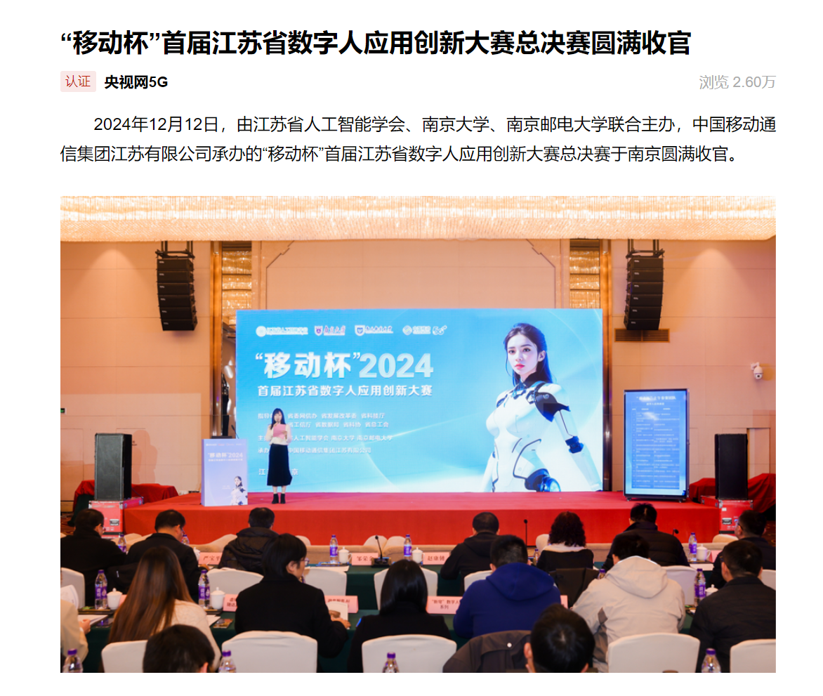 【央視網】“移動杯”首屆江蘇省數字人應用創新大賽總決賽圓滿收官