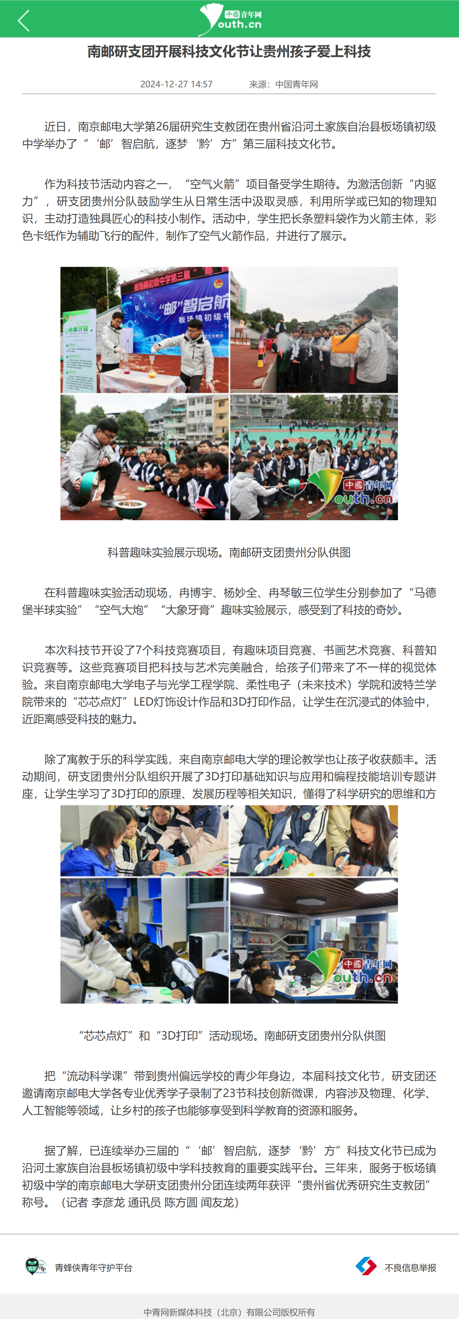 【中國青年網】南郵研支團開展科技文化節讓貴州孩子愛上科技