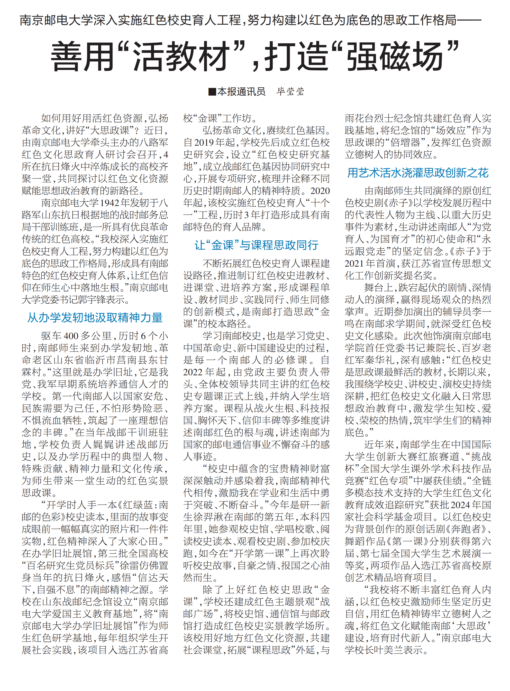 【江蘇教育報(bào)】南京郵電大學(xué)深入實(shí)施紅色校史育人工程,努力構(gòu)建以紅色為底色的思政工作格局