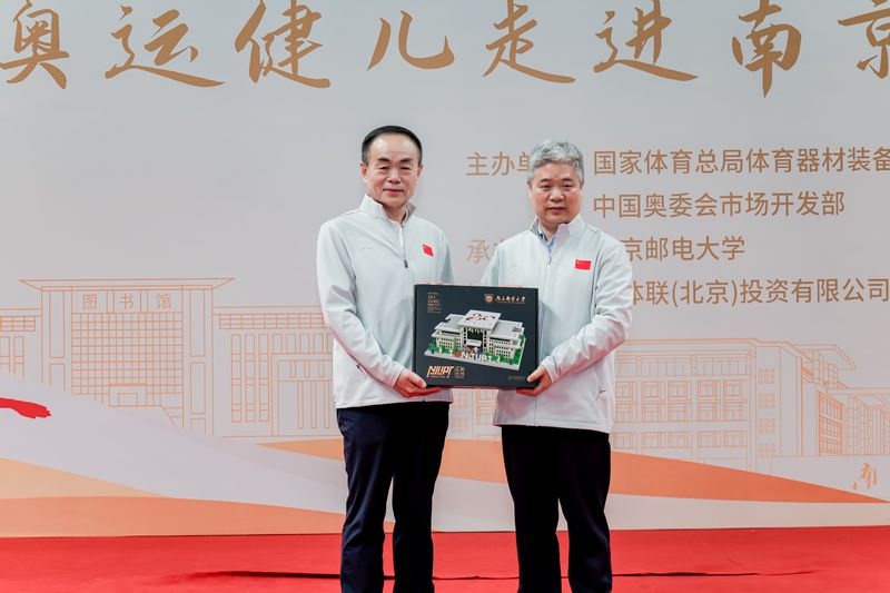 于建勇主任、郭宇鋒書記、李金泉主任為奧運冠軍楊倩、張雨霏、王賜月等健兒們頒發(fā)榮譽證書,表彰他們?yōu)轶w育事業(yè)作出的杰出貢獻。于建勇主任向南京郵電大學(xué)贈送巴黎奧運會領(lǐng)獎服,郭宇鋒書記回贈學(xué)校模型。