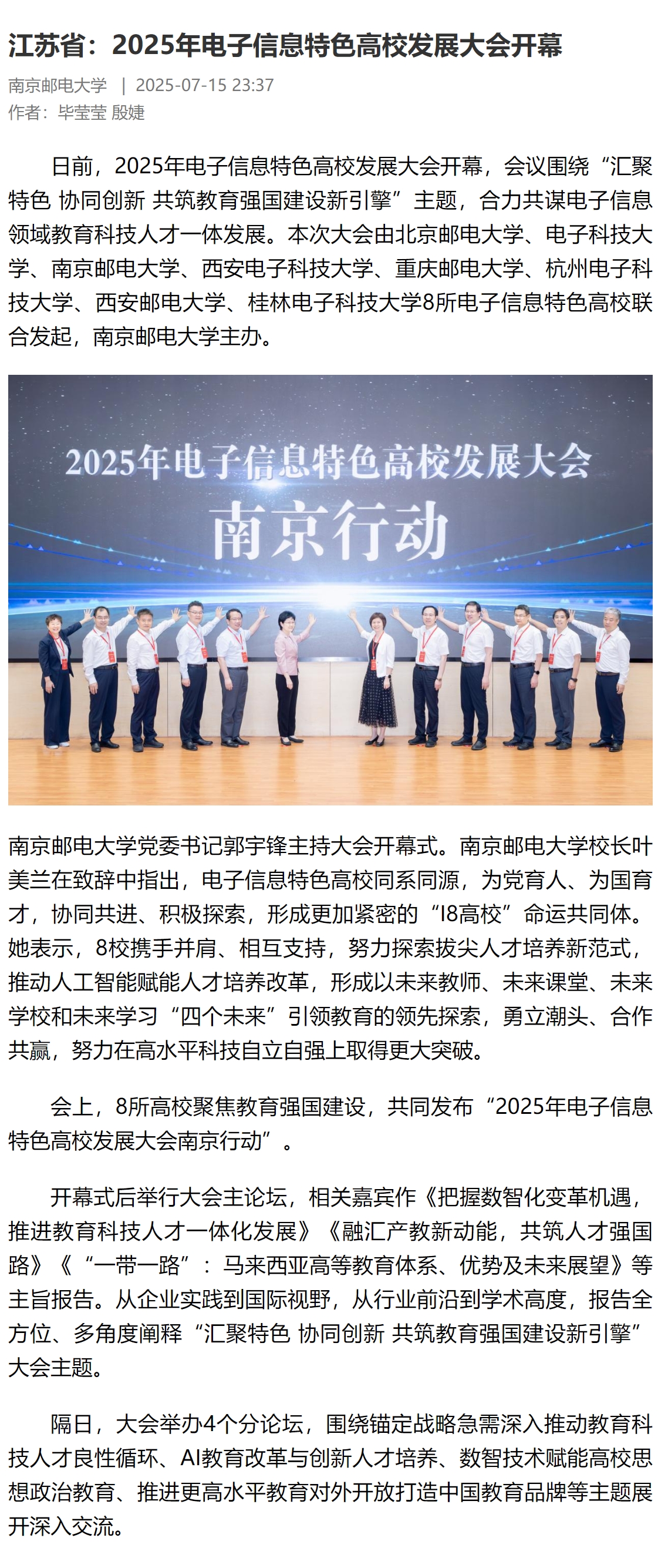 【中國青年報客戶端】江蘇省:2025年電子信息特色高校發展大會開幕