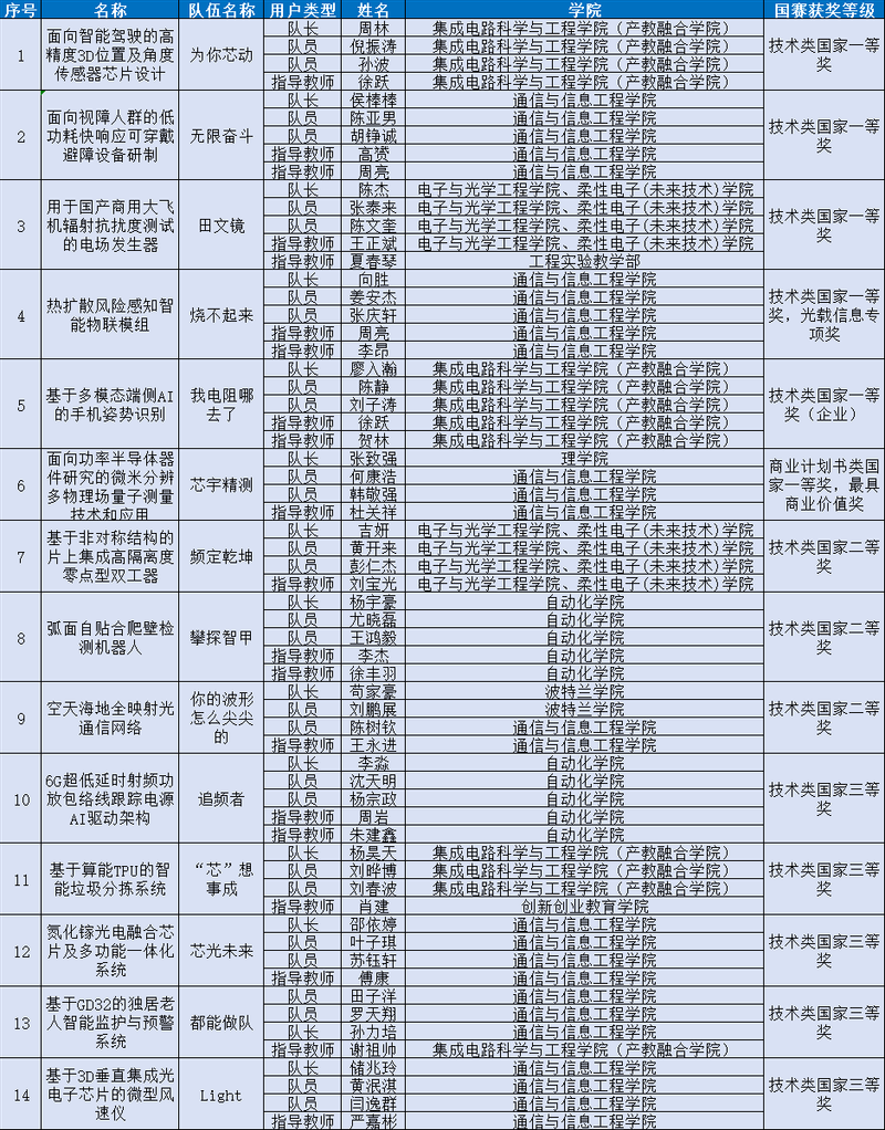 8月14日—17日,“兆易創新杯”第二十屆中國研究生電子設計競賽全國總決賽在深圳舉辦。南京郵電大學研究生參賽團隊共獲一等獎6項(技術類一等獎4項、企業賽道一等獎1項、商業計劃書類一等獎1項)、二等獎3項、三等獎5項、光載信息專項獎1項、最具商業價值獎1項,5名教師獲“全國優秀指導教師”稱號,南郵獲“優秀組織獎”。
