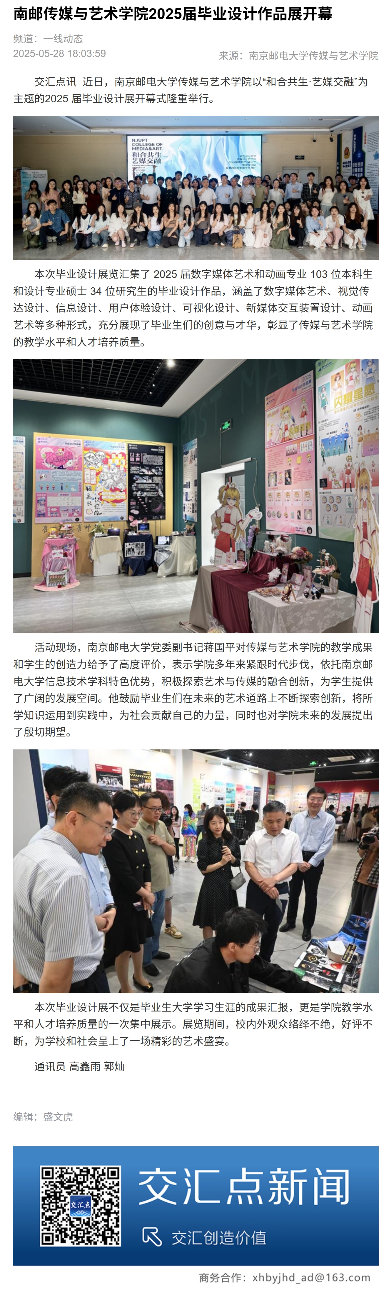 【新華日報客戶端】南郵傳媒與藝術學院2025屆畢業設計作品展開幕