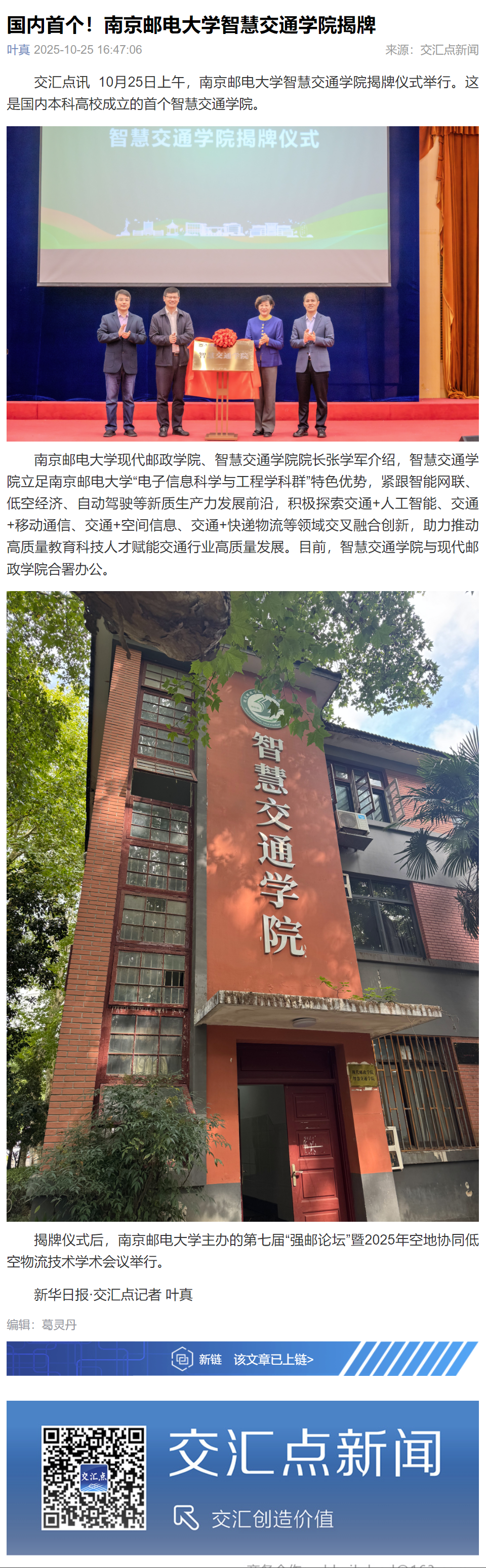 【新華日報客戶端】國內首個!南京郵電大學智慧交通學院揭牌