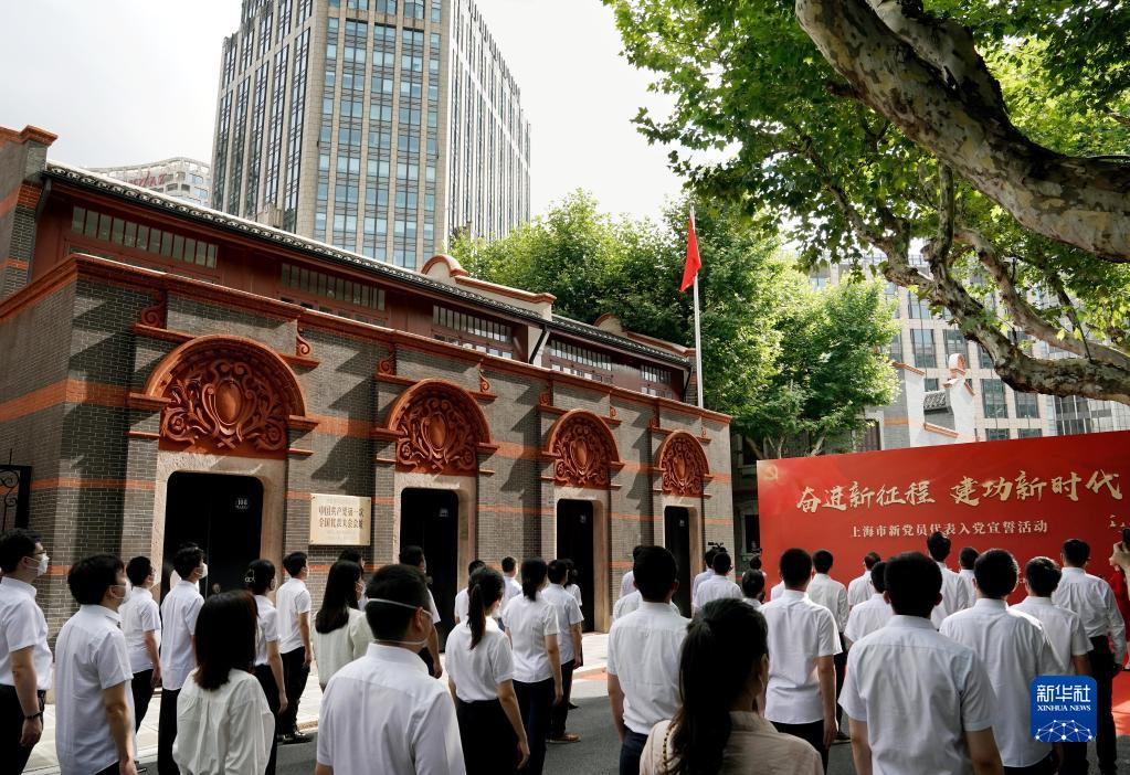 上海市新黨員代表入黨宣誓活動在中共一大會址前舉行(2022年7月1日攝)。
