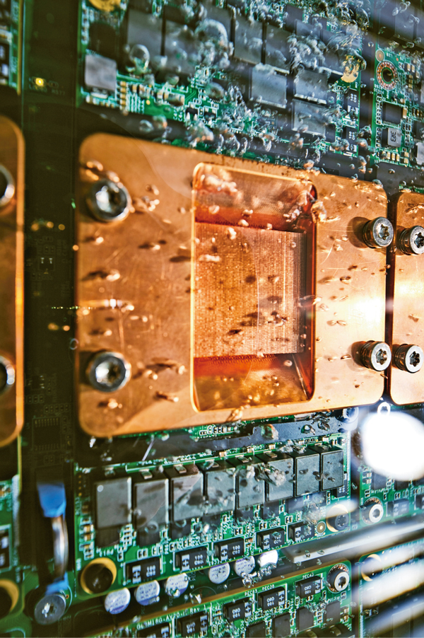 數字經濟對經濟社會的引領帶動作用日益凸顯。圖為2021年11月拍攝的液冷計算節點,能夠將數據中心能效比PUE降至1.1以下,比傳統風冷技術節電20%?!≈袊茖W院供圖