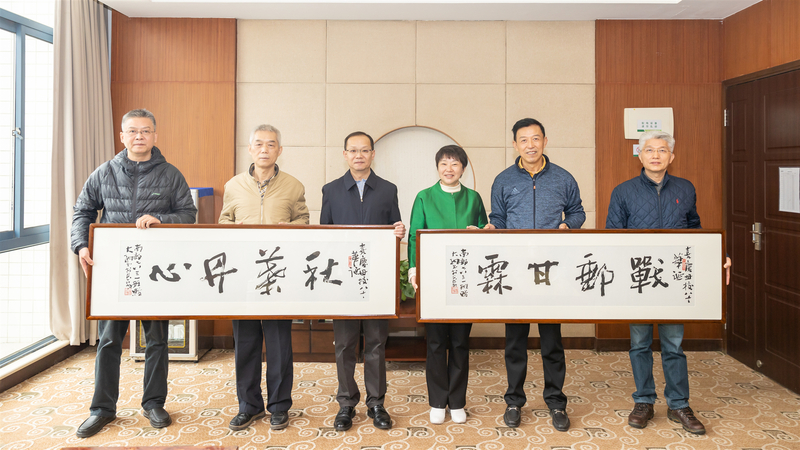 11月18日上午,我校1978級校友江蘇移動原總經(jīng)理王建、南京市統(tǒng)計局原辦公室主任呂勝利、南方電訊公司原總經(jīng)理陳懷、西安市公安局原二級高級警長于勤業(yè)代表7831班向?qū)W校捐贈兩幅字畫作品,慶賀母校八十華誕,表達(dá)對母校的拳拳之心和款款之情。校長葉美蘭,校黨委常委、副校長荊晅代表學(xué)校接受捐贈。