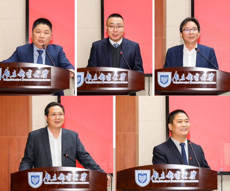 捐贈企業(yè)代表蔡建楠副總裁、薛馳總裁、李六兵董事長、宗琰董事長、孫緒芹董事長分別發(fā)言。他們對學(xué)校長期以來對企業(yè)的幫助和支持表示由衷感謝,并簡要介紹了各企業(yè)的發(fā)展現(xiàn)狀。八十載春華秋實,學(xué)校為社會各行各業(yè)培養(yǎng)輸送了26萬余名優(yōu)秀人才,為通信、信息事業(yè)的發(fā)展作出了卓越貢獻(xiàn)。學(xué)校利用豐富的社會資源為各企業(yè)穿針引線、鋪路搭橋,企業(yè)的發(fā)展離不開學(xué)校的支持。他們表示,將擔(dān)起“國家富強、民族復(fù)興、人民幸福”的重?fù)?dān),與學(xué)校進(jìn)一步加強交流合作,為學(xué)校事業(yè)高質(zhì)量發(fā)展貢獻(xiàn)智慧力量,提供堅強保障。