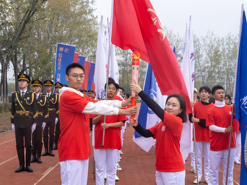 教師代表與學生代表進行火炬?zhèn)鬟f