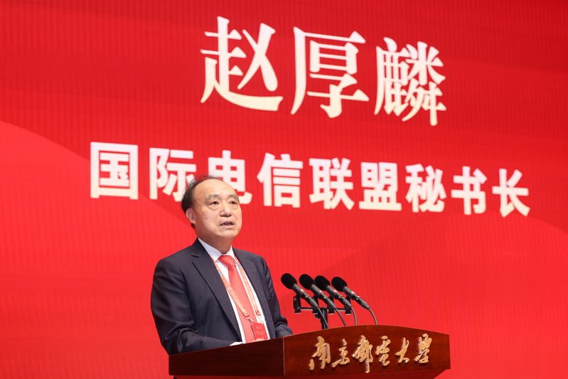 國(guó)際電信聯(lián)盟秘書長(zhǎng)、我校杰出校友趙厚麟深情致辭。他表示在國(guó)際電聯(lián)總部日內(nèi)瓦工作期間見證了偉大祖國(guó)為國(guó)際通信事業(yè)作出的巨大貢獻(xiàn),令他感受到了“中國(guó)速度”。他指出,一代代南郵人秉承“厚德、弘毅、求是、篤行”的校訓(xùn),在信息科技前沿領(lǐng)域,處處皆有南郵人的身影。學(xué)校辦學(xué)80年來碩果累累,他希望師生校友傳承紅色基因,賡續(xù)紅色精神,不忘初心使命,在黨的二十大精神的指引下,抓住機(jī)遇,乘勢(shì)而上,在世界一流學(xué)科和江蘇高水平大學(xué)高峰計(jì)劃建設(shè)道路上行穩(wěn)致遠(yuǎn),努力探索出一條依托郵電通信行業(yè)做專做精、面向信息化社會(huì)做大做強(qiáng)的大信息特色發(fā)展之路,向新時(shí)代輸送一批又一批優(yōu)秀信息人才。