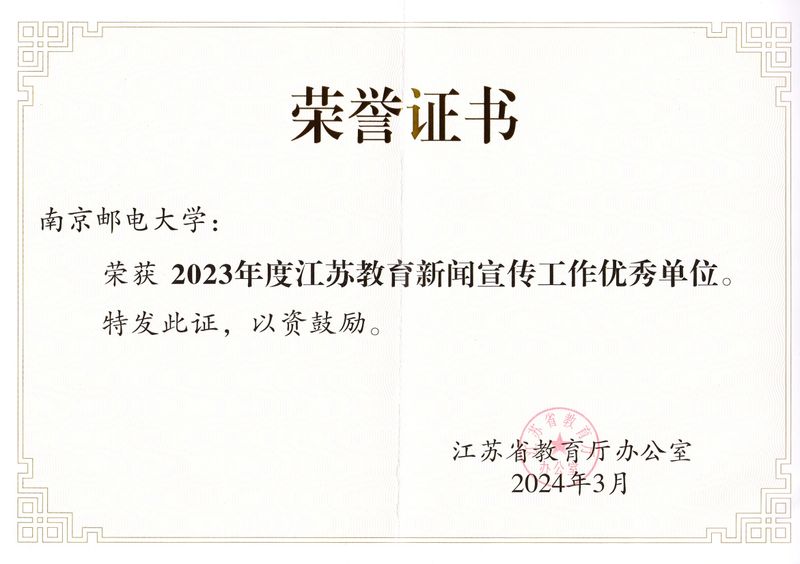 3月21日,2024年全省教育新聞宣傳工作部署推進會召開。會上宣讀了2023年度江蘇教育新聞宣傳優(yōu)秀單位表揚名單,我校以本科高校總分第四名,再次獲評江蘇教育新聞宣傳工作優(yōu)秀單位,這是學(xué)校連續(xù)第五年被通報表揚。