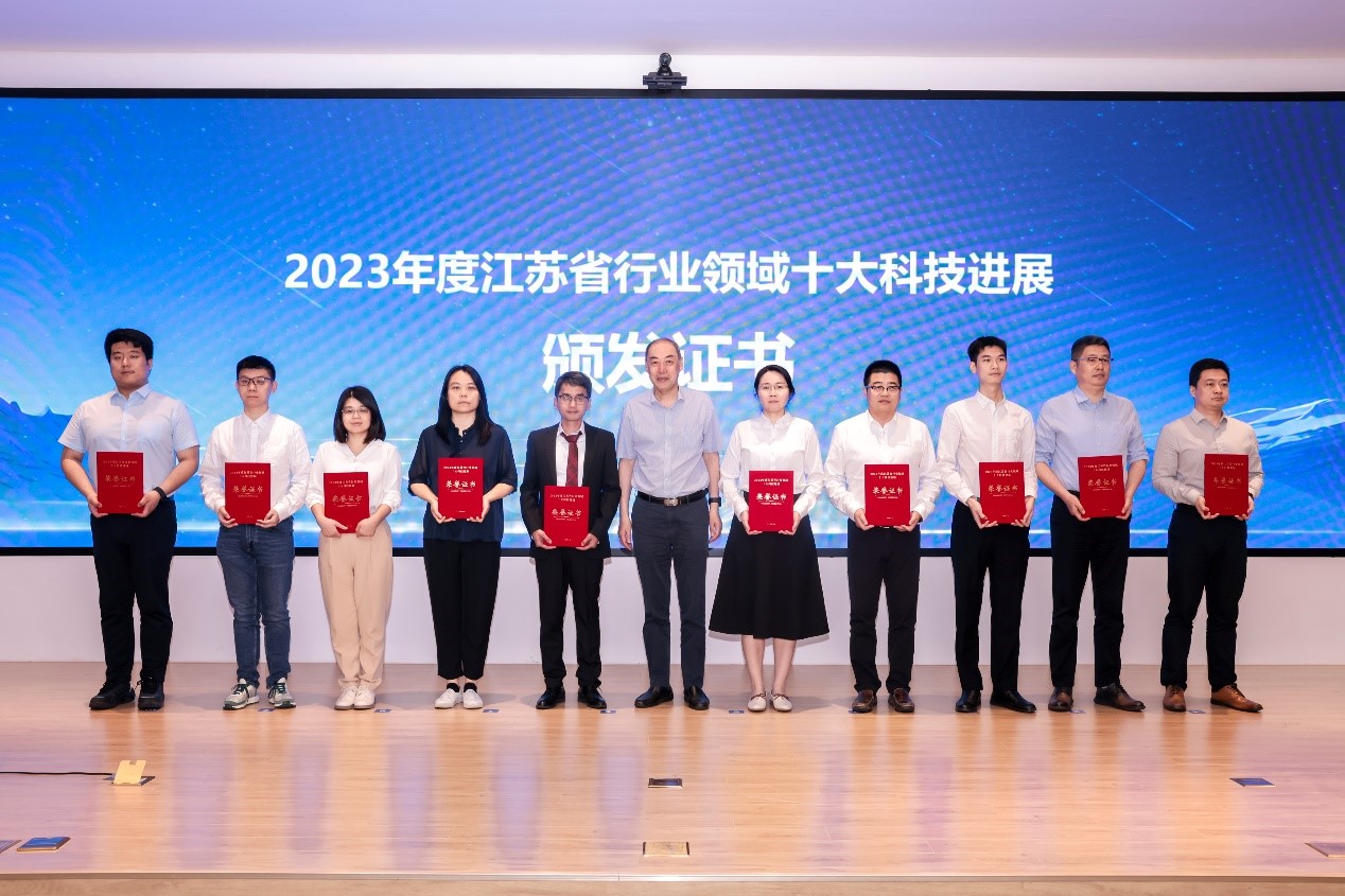 2023年度江蘇省行業領域十大科技進展獲獎證書