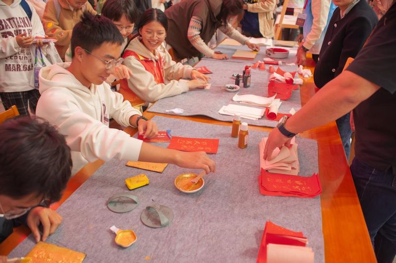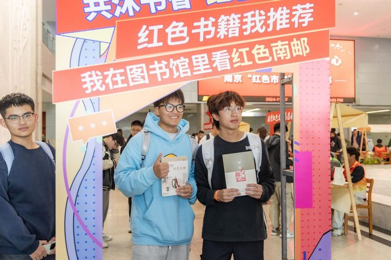 11月7日下午,“共沐書香紅色潤心”南京郵電大學“紅色市集”舉行,活動包括紅色文化展示、閱讀及體驗。在“紅色印記站”,師生精心挑選心儀的紅色書籍打卡;在“紅色閱讀區”,豐富的紅色書籍讓師生盡情沉浸于閱讀的世界;“時光”郵遞箱旁,師生認真寫下紅色書籍與電影的推薦語;在“戰郵墨韻簽”區域,師生積極參與答題,精心制作專屬書簽;在“文化拓印站”,師生們體驗拓印南郵校歌、校風、校訓等內容,圖書館的特色文創印章也備受青睞,大家踴躍蓋印留念。當日,圖書館“戰郵朗讀角”紅色閱讀空間開放,師生在此閱讀、討論、朗誦,留下“紅色聲音”;圖書館文化體驗共享空間內的追憶“紅”丁香活動也開展得有聲有色,師生觀看電影片段,共讀紅色書籍,交流心得。此外,現場還舉辦了《郵票中的黨史》展覽,吸引眾多師生觀賞。