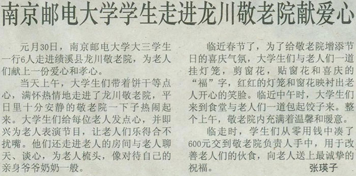 【新績溪】南京郵電大學學生走進龍川敬老院獻愛心