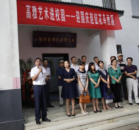 王國平副校長在致辭中表示,“求木之長者,必固其根本;欲流之遠者,必浚其泉源。”中華傳統文化是中華民族的精神命脈,是涵養社會主義核心價值觀的重要源泉,也是我們在世界文化激蕩中站穩腳跟的堅實根基。應結合新的時代條件,大力傳承和弘揚中華優秀傳統文化。在第67個國慶節即將到來之際,藝術館舉辦此次展覽,是一次很好的藝術教育活動,對于豐富南郵校園文化、助推文化品牌建設、涵育以大學生藝術素養、提升藝術審美品位、培育高尚情操,具有積極的推動作用。他希望藝術館今后能夠更多地舉辦高雅藝術進校園活動,以使浸潤在書香墨韻校園中的南郵學子既有腳踏實地的堅定,又有仰望星空的詩意,成為科學素質與人文素質并重的高素質人才。