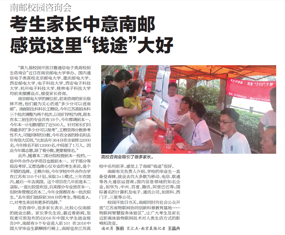【南京晨報】考生家長中意南郵 感覺這里“錢途”大好