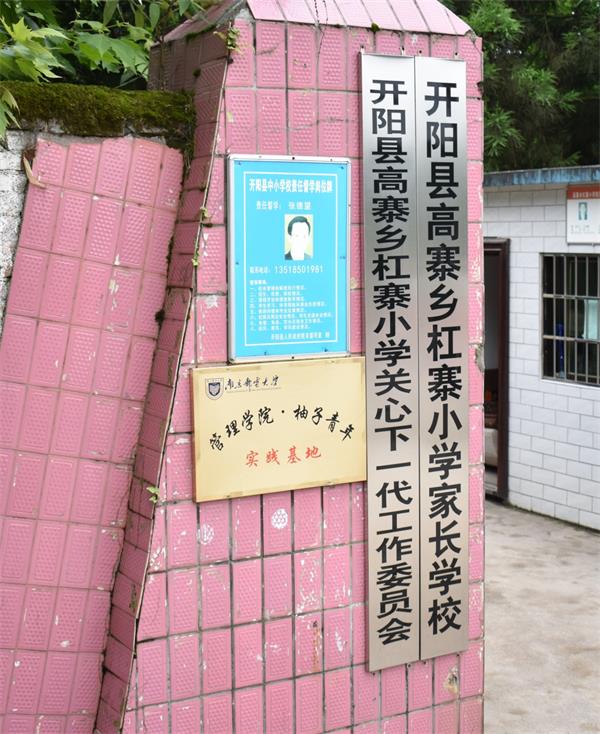 7月7日,南京郵電大學“柚子青年”暑期社會實踐基地揭牌儀式在貴州開陽高寨鄉杠寨小學舉行。儀式上,南京郵電大學管理學院黨委副書記鄧艷華老師與杠寨小學左昌德校長簽署了《共青團“青年就業創業見習基地”合同》,并為實踐基地揭牌。貴州省慈善總會項目部部長鄧建榮,杠寨村村支部書記,指導老師閭越、唐捷、劉婧、韓鈺鈴,11名學生志愿者以及杠寨小學的全體師生參加了此次活動。 據悉,南京郵電大學管理學院“柚子青年”教育扶貧實踐團是一支有著優秀歷史的志愿者團隊,至今已成立近10年。“柚子青年”公益教育項目“關愛女孩”、“關愛留守兒童”、“山區孩子科普教育”也已堅持近10年。由貴州省慈善總會牽線,在輔導員閭越老師的帶領下,”柚子青年“團隊走進開陽縣杠寨小學,開展為期約兩周的暑期社會實踐活動。