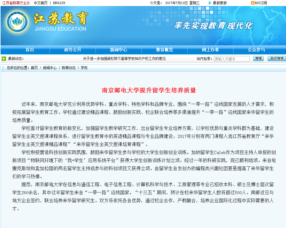 【江蘇教育】南京郵電大學提升留學生培養質量
