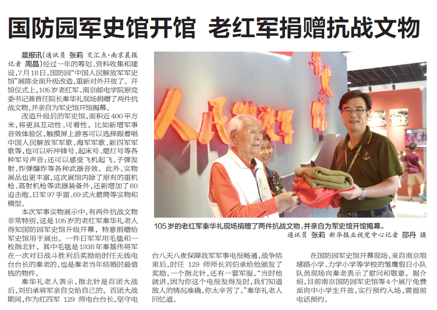 | 【南京晨報(bào)】國(guó)防園軍史館開館 老紅軍捐贈(zèng)抗戰(zhàn)文物 |