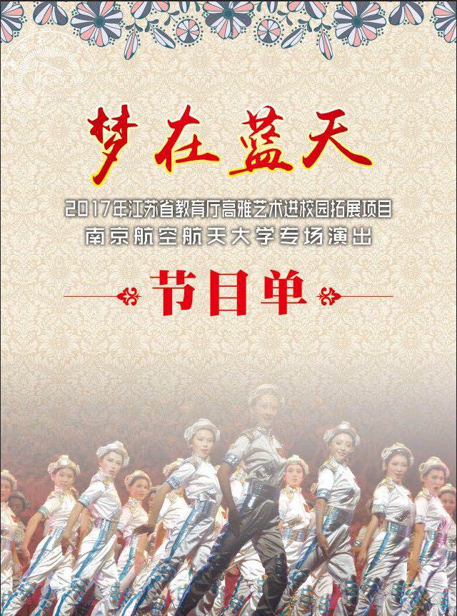 | 關于舉辦2017年江蘇省高雅藝術進校園拓展項目——"夢在藍天"南京航空航天大學專場演的通知 |