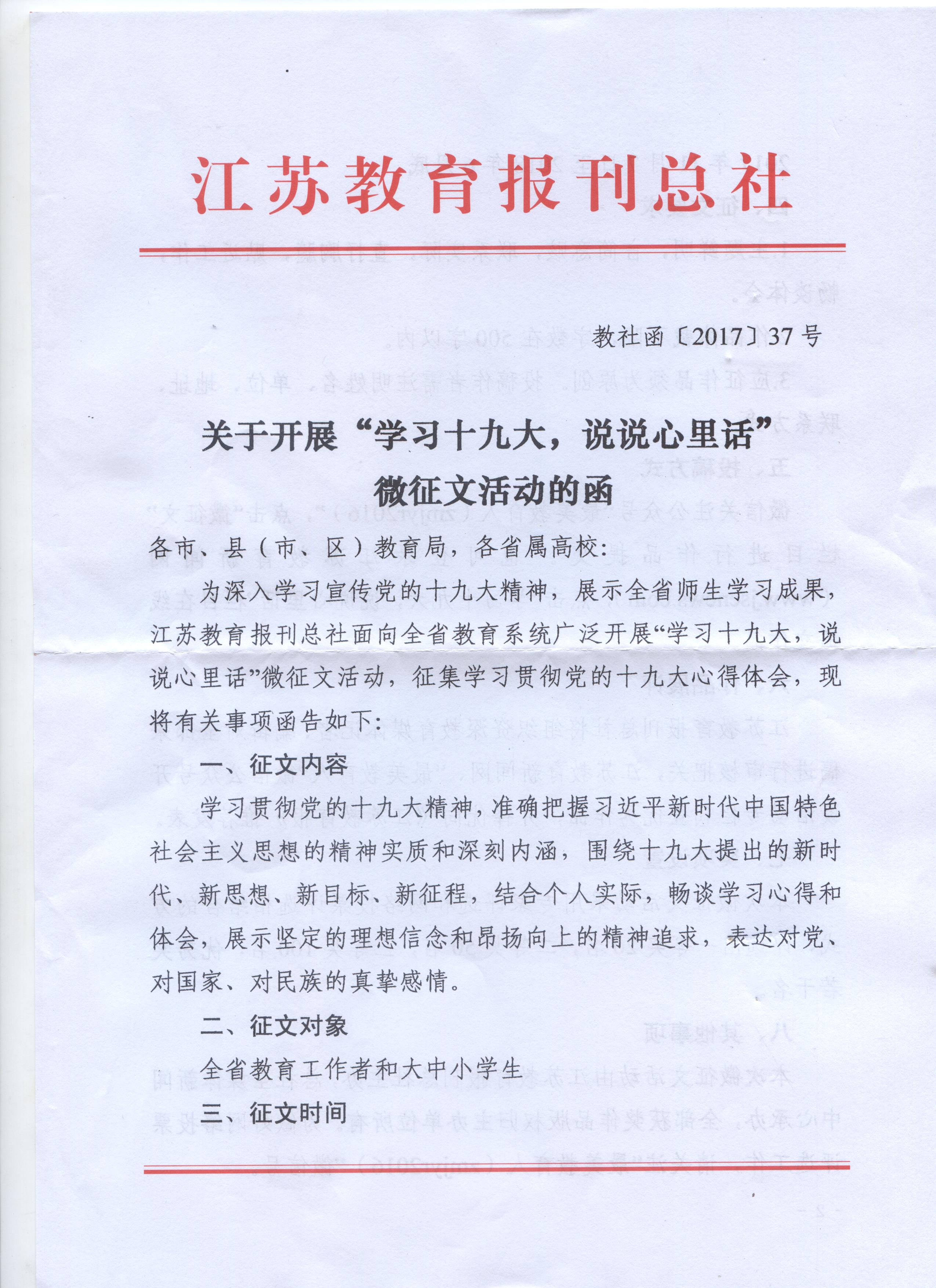 關于開展“學習十九大,說說心里話”微征文活動的通知