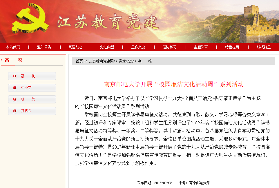 發布時間: 2018-02-02 瀏覽次數: 2081 文章來源: 江蘇教育黨建網