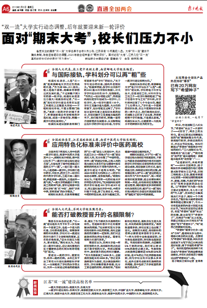 要建設一流的學科,需要吸引、培養一流的名師。去年江蘇下放了所有本科高校教師職稱評審權,一方面提高了學校的辦學自主權,另外一方面通過精準的措施改革,激發了各個層次各類教師的積極性。但是職稱晉升中還有需要解決的問題,“比如研究型大學教授高級職稱占比的問題,高校正副教授的名額有一定限制,我們對正副教授的比例也有規定。需要花些精力來進行改革。”