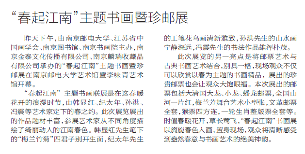 【現(xiàn)代快報】“春起江南”主題書畫暨珍郵展