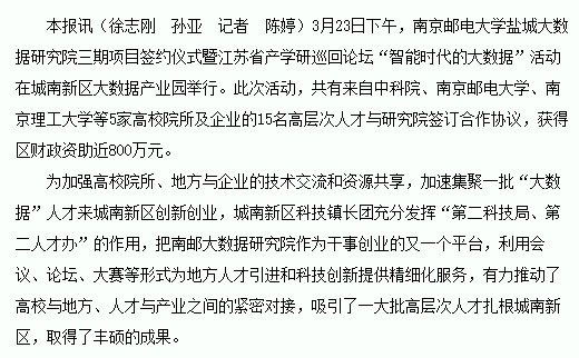 【鹽阜大眾報】南郵鹽城大數據研究院三期項目簽約