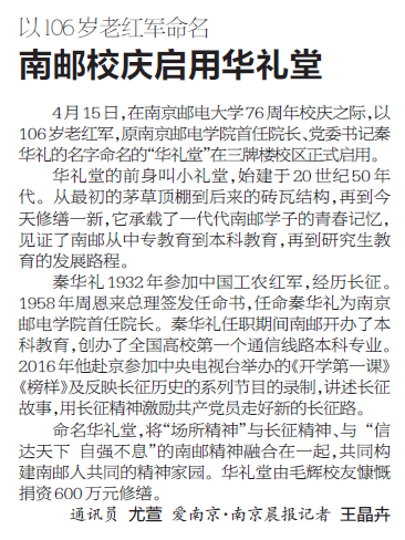 | 【南京晨報(bào)】南郵校慶啟用華禮堂 |
