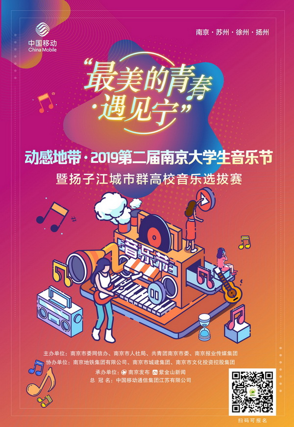 “最美的青春·遇見寧”動感地帶·2019第二屆南京大學生音樂節暨揚子江城市群高校音樂選拔賽將正式開唱。 此次音樂節由南京市委網信辦、南京市人社局、共青團南京市委、南京報業傳媒集團主辦,南京地鐵集團有限公司、南京市城建集團、南京市文化投資控股集團協辦,南京發布、紫金山新聞承辦,中國移動通信集團江蘇有限公司總冠名。活動將從4月一直持續到6月,橫跨南京、蘇州、徐州、揚州四大賽區,動員南京80萬在校大學生,通過原創音樂的力量,進一步宣傳美麗南京,讓更多人了解南京,愛上南京,共筑起城市和大學生之間溝通的橋梁。 “創新名城,美麗古都”歡迎有情懷的你 今天的“創新名城、美麗古都”南京正向著實現更高質量發展的目標邁進。隨著“寧聚計劃”的實施,越來越多的大學生選擇來寧就業、創業。在年輕學子眼中,南京有著廣闊的發展天地,和極具包容的成長空間,對新生代的音樂人來說,這里同樣是他們追夢的沃土。而音樂,作為最具表達力的語言,搭建起了城市與大學生之間溝通的橋梁,他們將用音樂唱響“我愛南京”,也將在南京繼續自己的夢想。 新時代屬于敢于筑夢、善于圓夢的奮斗者。所以本次音樂節將通過優秀青年音樂人的原創音樂,講述他們與南京的故事,反映南京70年巨變。同時通過音樂節的平臺影響力,進一步推動南京“創新名城,美麗古都”建設。 以音樂為媒,因音樂相約 作為揚子江城市群最大規模的大學生音樂賽事,今年是南京大學生音樂節舉辦的第二年。去年首屆音樂節從3月初報名開始,到5月21日落下帷幕,活動期間線上總計報名人數近千組。從南京到蘇州、徐州、揚州,整個音樂節輻射揚子江城市群及淮海經濟區的高校群,以“我愛音樂”的方式展現青春活力的“強富美高”新江蘇。歷經4個城市6場線下初賽,音樂節每到一個城市,都在當地校園內掀起一股音樂熱潮。 今年的南京大學生音樂節,同樣將通過在南京以及蘇州、徐州、揚州分賽區舉辦初賽、晉級賽、總決賽的方式,選拔出青年音樂人。線下初賽階段,南京地區將在仙林、浦口兩大片區分類進行,每場比賽前以電話形式通知初賽入圍名單。初賽將根據選手表演情況,由現場專業評委打分最終判定晉級隊伍,各賽區每場選出2-4個名額參加晉級賽。在晉級角逐中,所有優秀選手將通過專業導師指導進行激烈對決,最終選出10名優秀個人或樂隊! 優秀選手將有機會登上森林音樂會舞臺 為讓年輕音樂人有更多展示和發展空間,本次音樂節還為決賽獲勝者提供了豐厚的獎勵,他們將會獲得以下殊榮:南京市“十佳高校音樂人(樂隊)”獎杯;南京印象宣傳片的拍攝;“最美的青春·遇見寧”音樂專輯;全國百余家媒體采訪報道,專屬節目專訪;優秀音樂人還可登上南京森林音樂會的舞臺;中國移動校園形象代言人;移動專屬校園MV、海報。 主辦方介紹,本次音樂節以“最美的青春·遇見寧”為主題,立足南京,輻射全省。采用線上線下、融媒體傳播的方式,推進“創新名城,美麗古都”建設,歌頌青春夢想,聘請眾多專業評委和制作人,提供高水準樂器和舞臺設備,搭建自由開放的音樂平臺,扶持新生代本土音樂力量的發展。 同時,舉辦音樂節也是為豐富校園藝術文化生活,營造南京濃厚的音樂氛圍,展示當代大學生積極向上的精神面貌。讓音樂和夢想的力量深入人心,共同唱響青春熱血的新時代之歌。 與評委嘉賓一同做音樂追夢人 除了選手實力強勁,本次音樂的評委陣容也很豪華。曾與王力宏共同創作合唱超人氣單曲《南京,南京》、曾任2019“中國好聲音”南京賽區明星戰隊導師的著名唱作人朱小磊,愛奇藝《我是唱作人》音樂評審團評審、南京本土唱作人高澤深,梁靜茹南京歌友會特邀女歌手AMANI,組織并主持參演“南京音樂廣播首屆獨立音樂節”“新生登場南京高校搖滾樂演季”等大型活動的著名DJ、南京音樂廣播《城市樂動聽》節目主持人楊侃等資深藝人都將親臨現場,不僅為選手提供專業的點評和指導,還將與觀眾一同分享他們音樂追夢歷程中的精彩故事。 國風音樂,獻禮南京 近年來,國風音樂在網絡上悄然興起,以其古典雅致,中華底蘊豐厚的獨特人文魅力深受當代人,特別是當代青年人的追捧和喜愛,逐漸成為中國當代音樂文化中的重要支柱。在畢業季到來之際,無論是愛好國風、嘻哈、搖滾還是R&B等表演形式的大學生們,都將在此次南京大學生音樂節,找到一個展示自我才華的舞臺。舉辦此次活動,亦是希望更多的大學生能夠在南京包容、開放的情懷中,學在南京、留在南京、創業在南京,與這個城市融為一體,一起實現夢想。 同時,音樂節還會將活動宣傳與南京城市地標推廣相結合,展現南京各大學城、南京各區的城市風貌和人文藝術氛圍。 線上報名已啟動,海選正進行中 音樂相逢,歌舞青春;以夢為馬,不負韶華。 如果你也有音樂夢,歡迎報名參加相應賽區的海選。本次活動面向在?;虍厴I三年內的大學生,參賽者為樂隊或個人形式參加,比賽形式必須為現場伴奏、現場演唱。比賽的作品長度應為三至五分鐘,風格不限。有愛國元素、追夢元素、地方特色元素、中國傳統文化元素的作品可享有亮點分值。若為樂隊形式報名,所有參賽樂隊成員必須始終在一支樂隊比賽。 目前,大賽的海選已經啟動,報名通道已經開通,參賽者可在南京發布、紫金山新聞客戶端