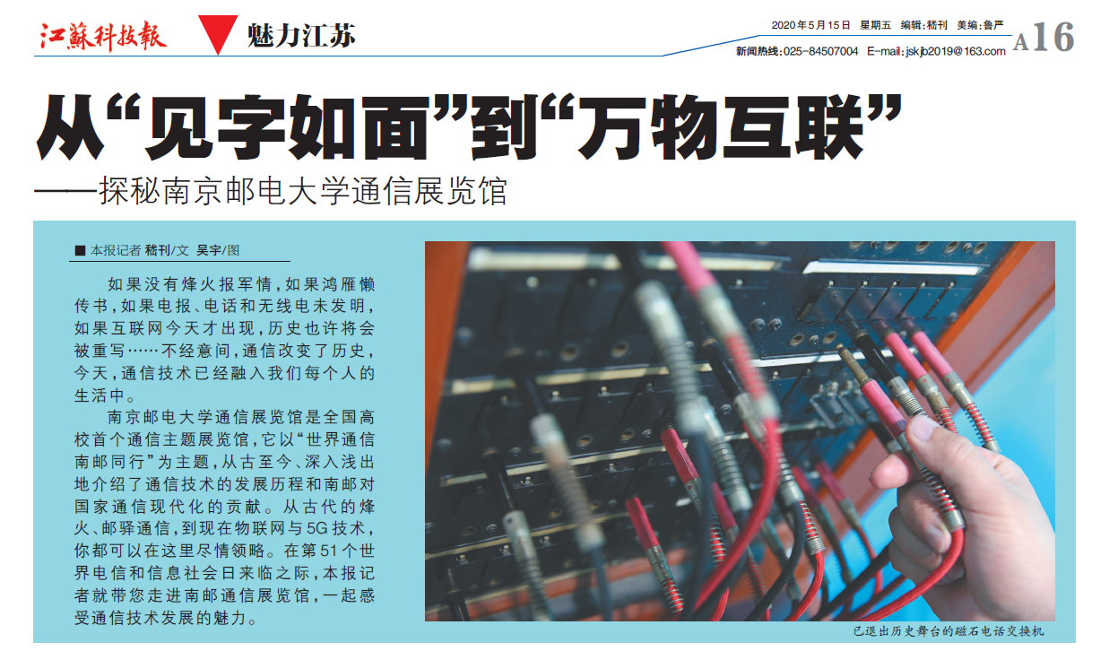 | 【江蘇科技報(bào)】從“見(jiàn)字如面”到“萬(wàn)物互聯(lián)”——探秘南京郵電大學(xué)通信展覽館 |