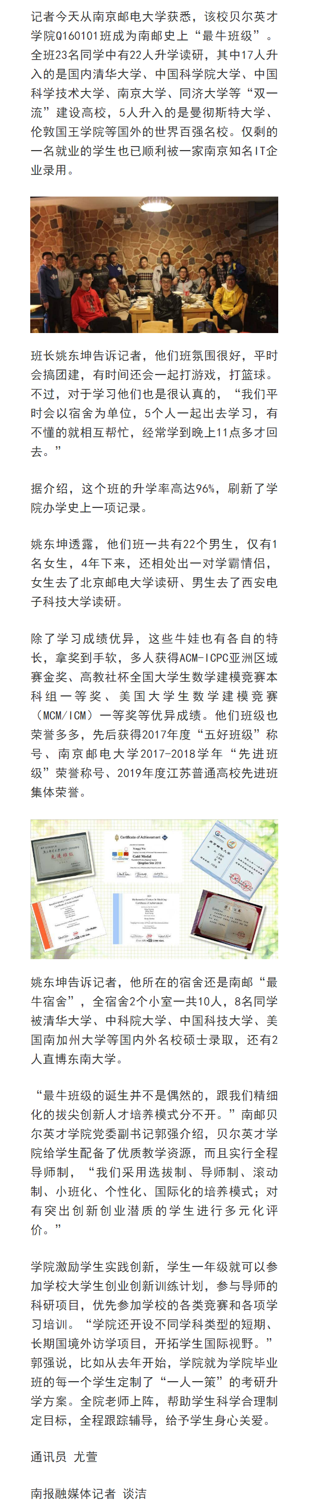 | 【南京日報客戶端】南郵“最牛班級”來了!23人中22人讀研,17人進“雙一流”、5人進國外名校 |