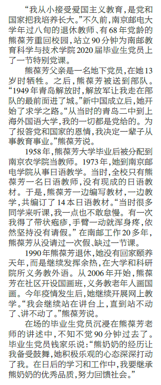 | 【江蘇教育報】南郵八旬退休教師為畢業生上黨課 |