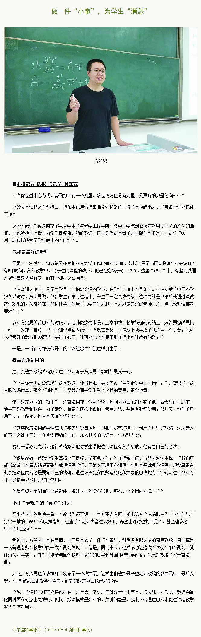 | 【中國科學(xué)報】做一件“小事”,為學(xué)生“消愁” |