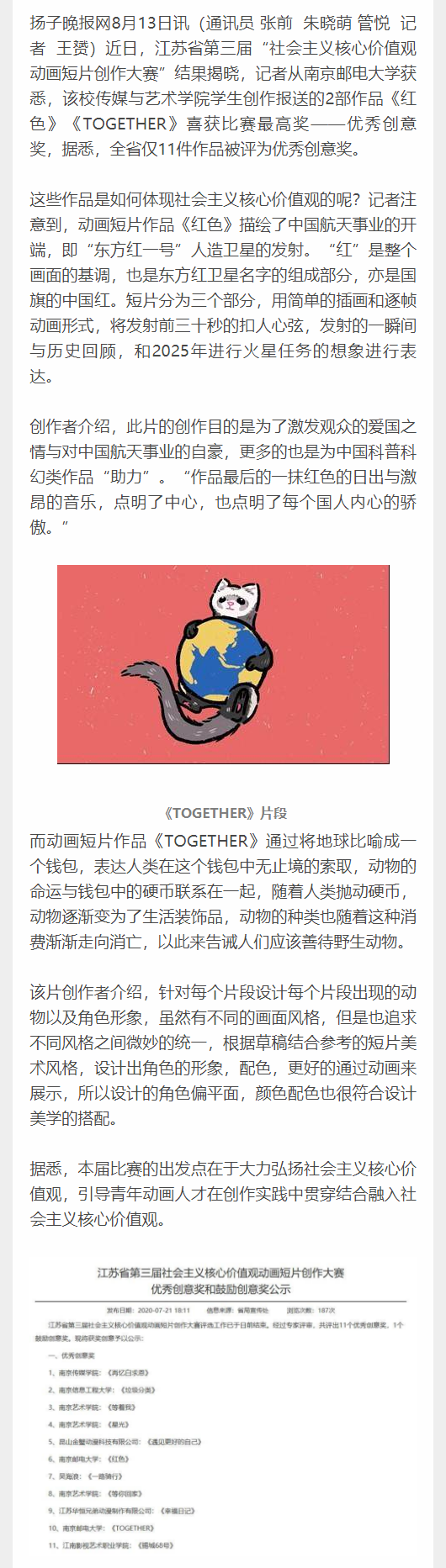 | 【揚子晚報客戶端】南京大學生用短片“解讀”社會主義核心價值觀,還獲獎了 |