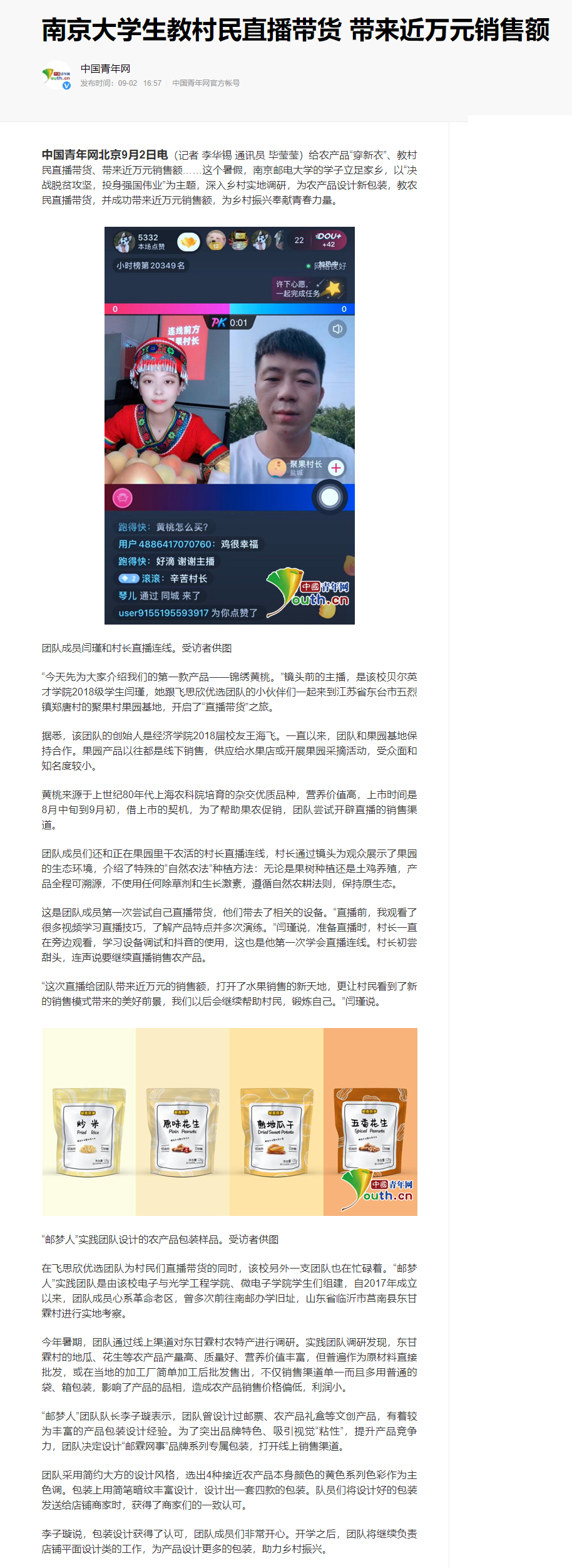 | 【中國青年網】南京大學生教村民直播帶貨 帶來近萬元銷售額 |