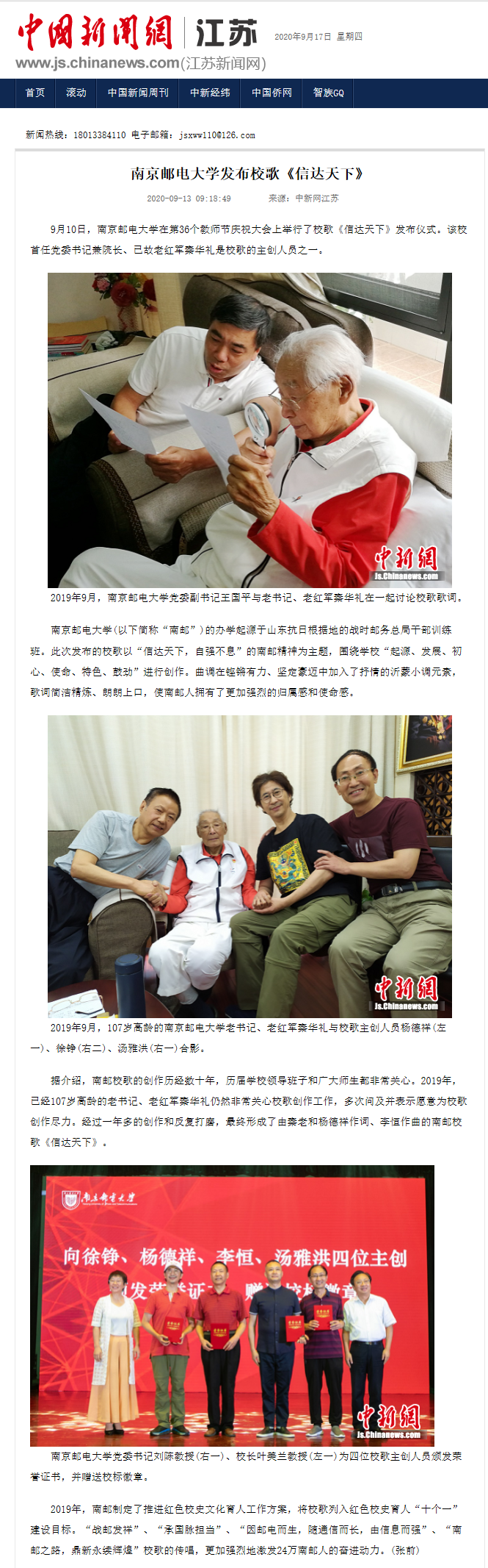 | 【中新網(wǎng)】南京郵電大學(xué)發(fā)布校歌《信達(dá)天下》 |