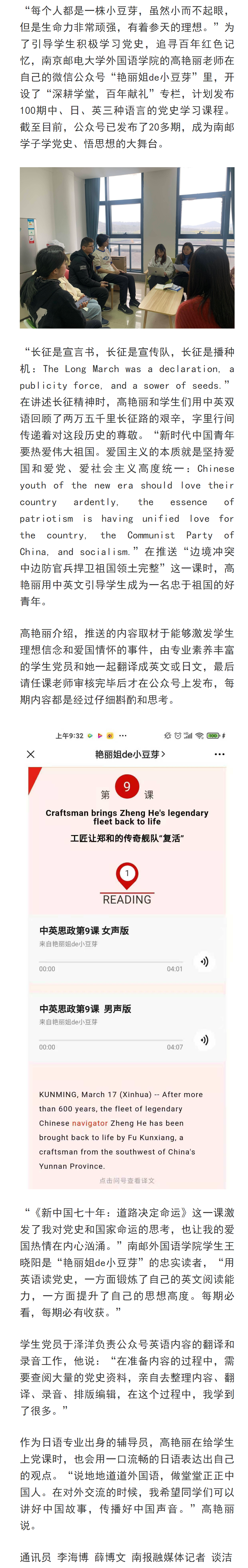 | 【南京日?qǐng)?bào)客戶端】3種語(yǔ)言講黨史!南郵這位輔導(dǎo)員厲害了 |