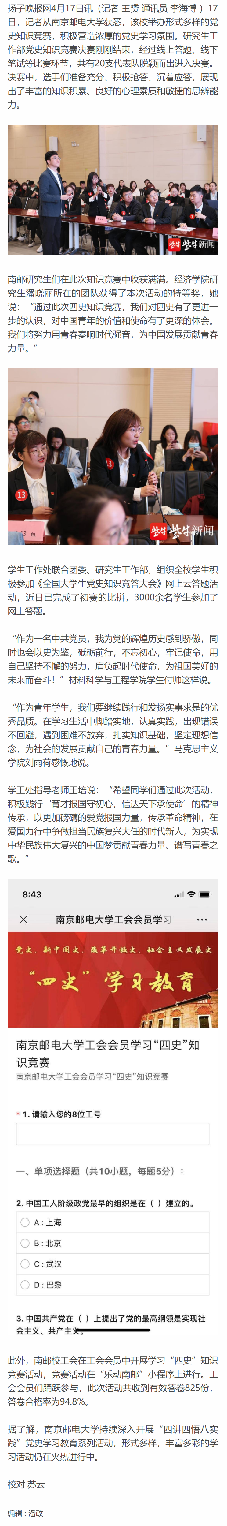 | 【揚子晚報客戶端】南郵舉辦黨史知識競賽,推動黨史學習教育走深走實 |