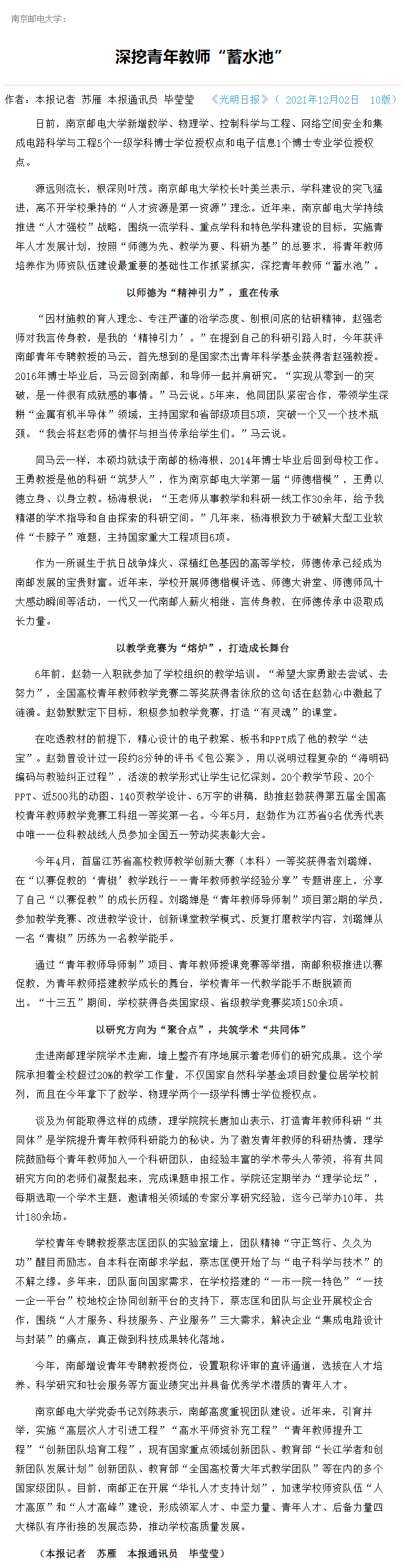 【光明日報】深挖青年教師“蓄水池”