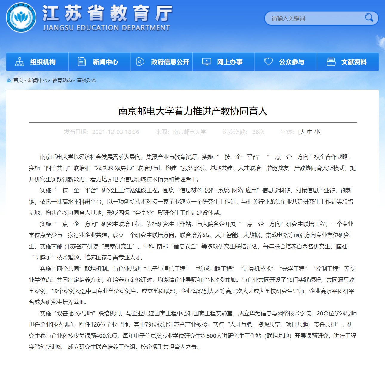 | 【省教育廳官網】南京郵電大學著力推進產教協同育人 |