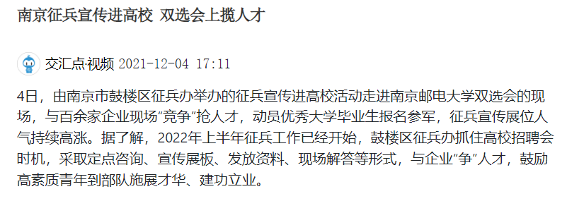 | 【新華日報客戶端】南京征兵宣傳進南郵 雙選會上攬人才 |